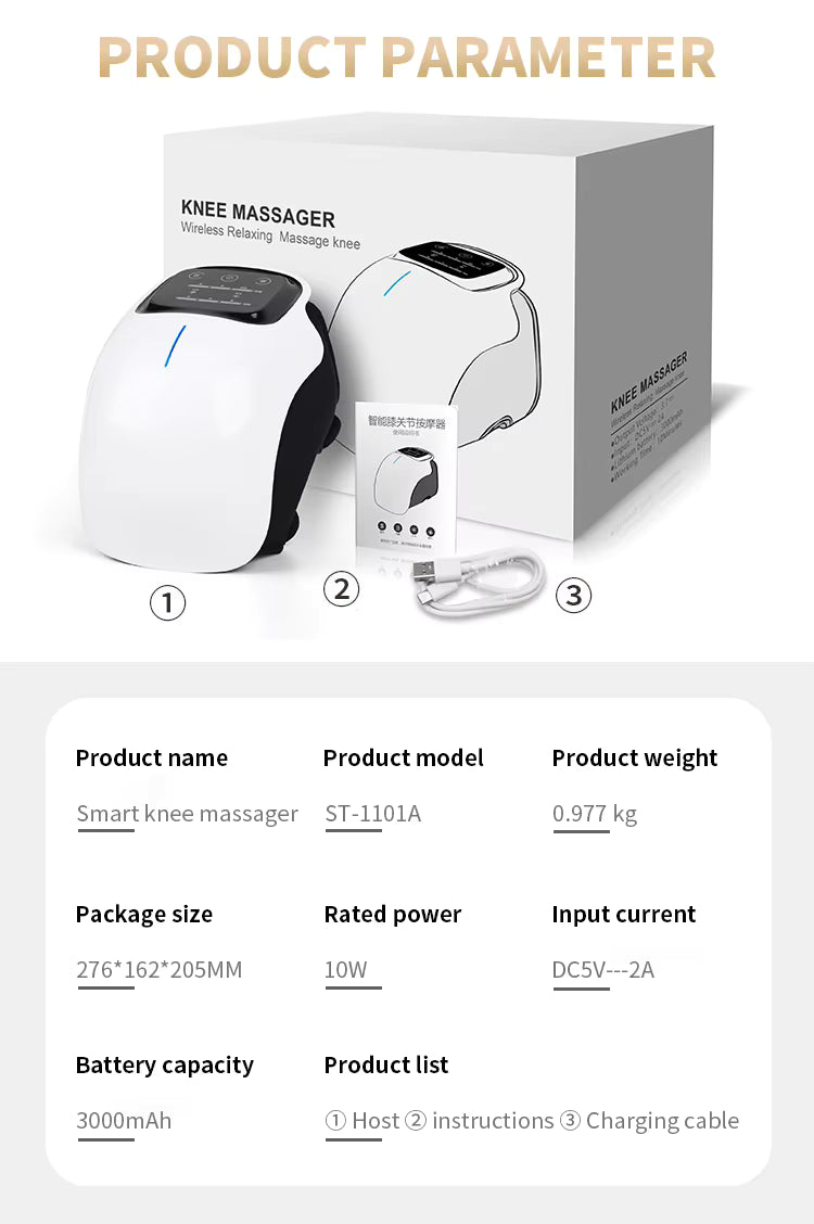 Yes! The knee massager is completely wireless and rechargeable, giving you the freedom to use it anywhere without being tethered to an outlet. The lightweight design makes it easy to carry, and the long-lasting battery ensures you can enjoy multiple massage sessions on a single charge. Perfect for use at home, at work, or while traveling.