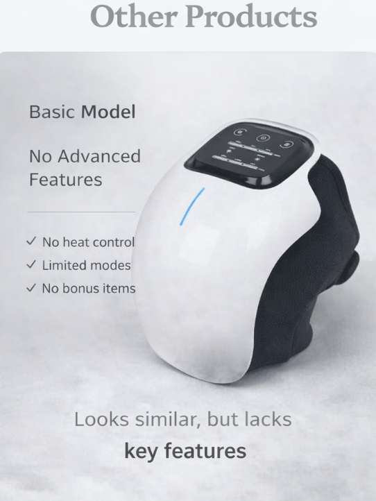 The red light therapy is a game-changer! This advanced feature uses specific wavelengths of red light to penetrate deep into your knee tissues, promoting cellular regeneration, reducing inflammation, and accelerating healing. Combined with vibration and heat, it creates a comprehensive therapeutic experience that sets this massager apart from ordinary knee massagers.